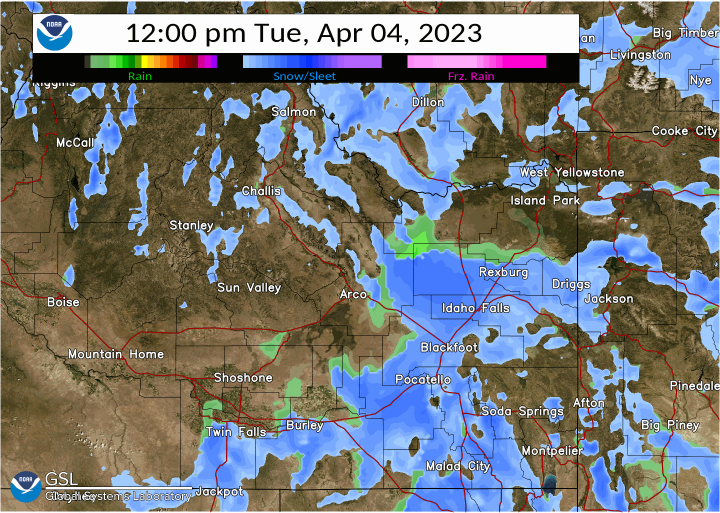 The National Weather Service reports snowfall in the range of 10 to 20 inches in the Pocatello/Chubbuck area, with a daily snowfall record set at the Pocatello Regional Airport with 5.2 inches on April 3 and 6.1 inches on April 4 so far.