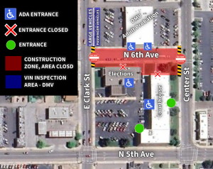 • A temporary ADA entrance, with designated parking, has been opened on the north side of the building by East Clark Street. ADA patrons are asked to call 208-236-7499 for assistance entering the building.