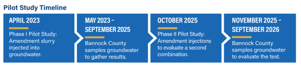 Bannock County injected an amendment slurry into groundwater to test if it could break down chemicals of concern (COCs) in a small test area.